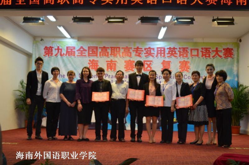 第九届全国高职高专实用英语口语大赛海南赛区获奖选手与各位指导教师合影