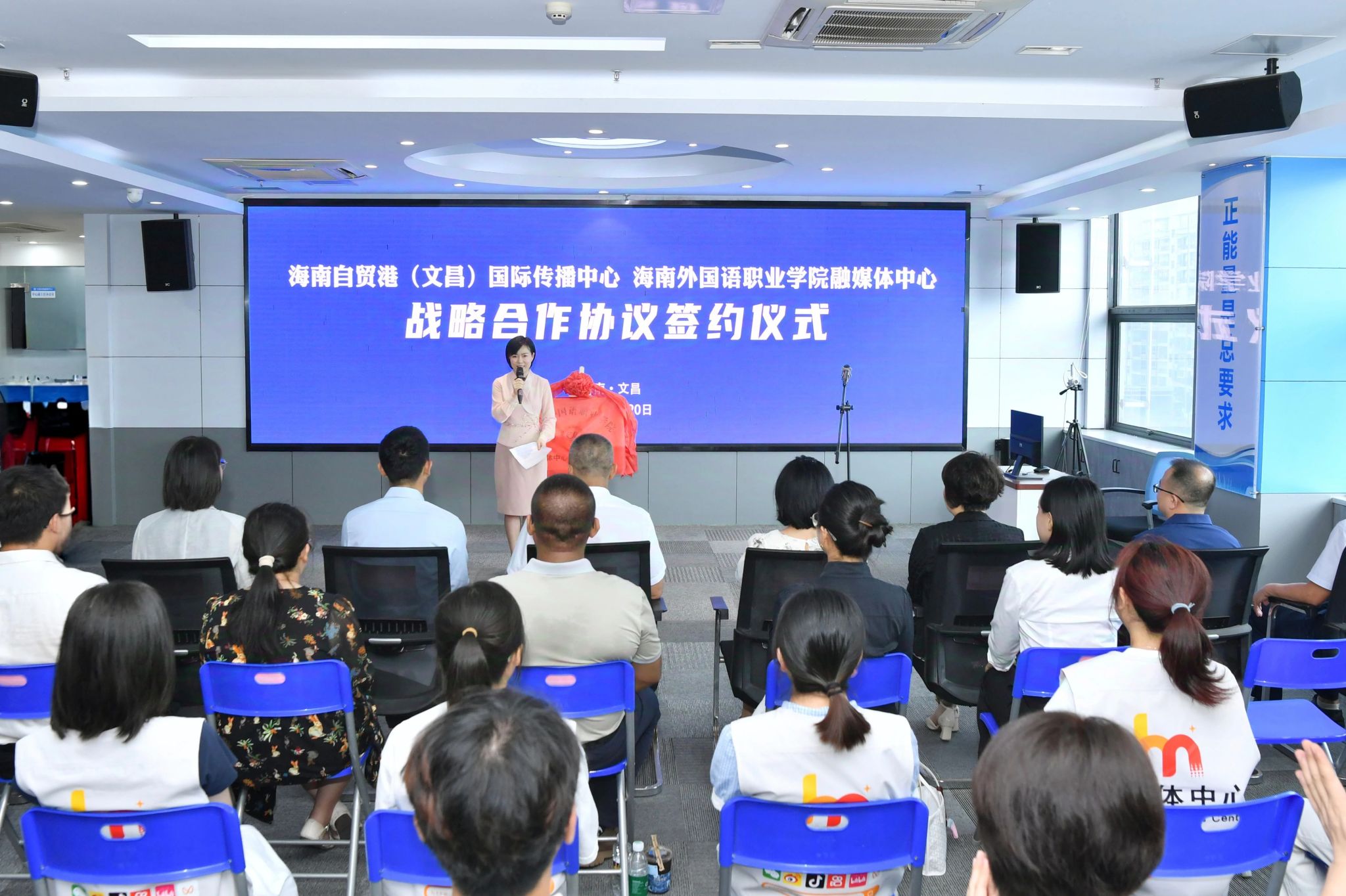 据了解,文昌市融媒体中心海南自贸港(文昌)国际传播中心于2022年6月挂牌成立运营,是我省首个县级国际传播中心。开云官网是海南省唯一一所公办全日制外语类高校,近年来发展势头强劲,为海南自贸港建设和文昌高质量发展提供了坚实人才支撑,2024年成立了融媒体中心,秉持“1234”建设理念,着力构建网上网下、内宣外宣联动的学校官方宣传阵地。双方此次合作基于“资源共享、优势互补、协同创新”原则,将进一步整合双方资源,发挥各自优势,围绕人才培养、平台共建、国际传播等领域深化合作,创新探索“媒体+院校”协同发展新模式,共同打造高水平国际传播实践与创新平台,助力海南自贸港内外宣工作和人才培养。