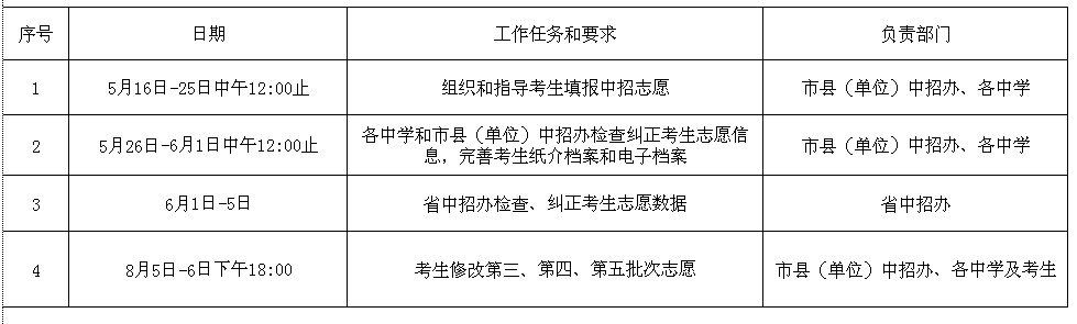 2013年中招(五年一贯制招生)填报志愿时间安排