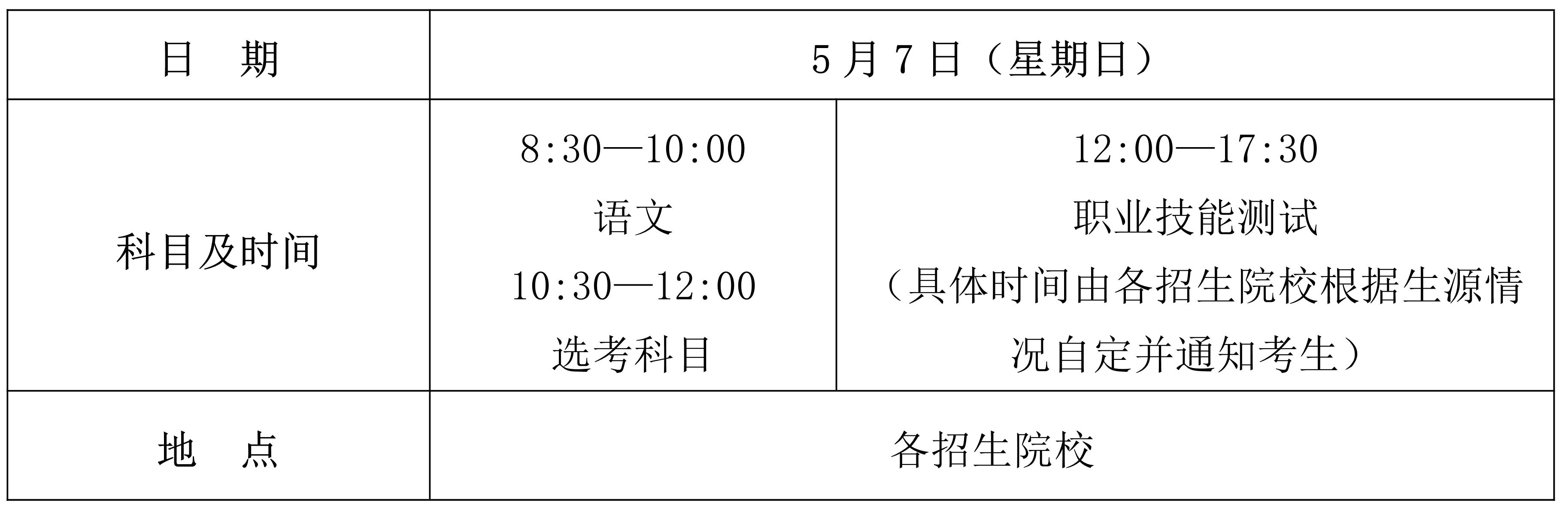 2023年5月15日前,各招生院校须将考生的职业技能测试成绩上传至报名系统,5月26日前由省考试局统一向考生公布成绩。