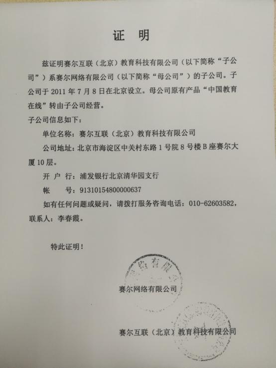中国教育在线(www.eol.cn)由赛尔互联(北京)教育科技有限公司在教育部指导下,依托中国教育和科研计算机网CERNET唯一独家运营。(相关证明见附件1)