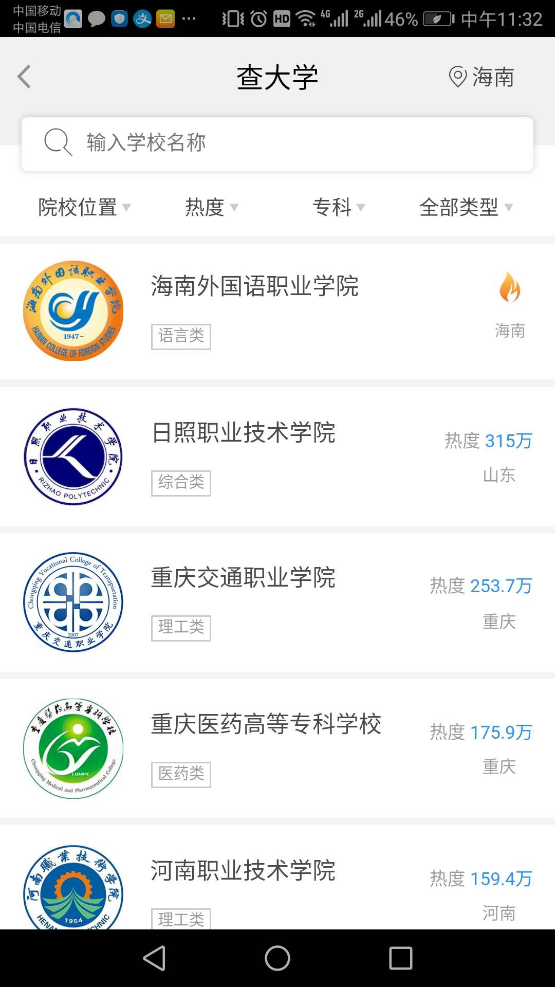 推荐院校排名(5个省用户:广东、云南、贵州、四川、海南)