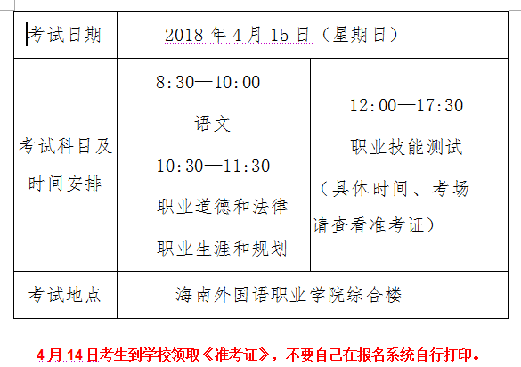 我院2018年单招考试时间4月15日
