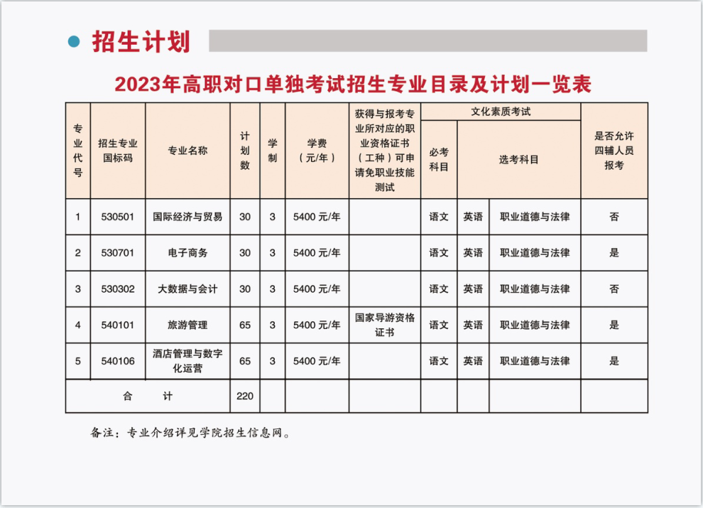 开云官网2023年高职对口单独考试招生专业目录及招生计划一览表