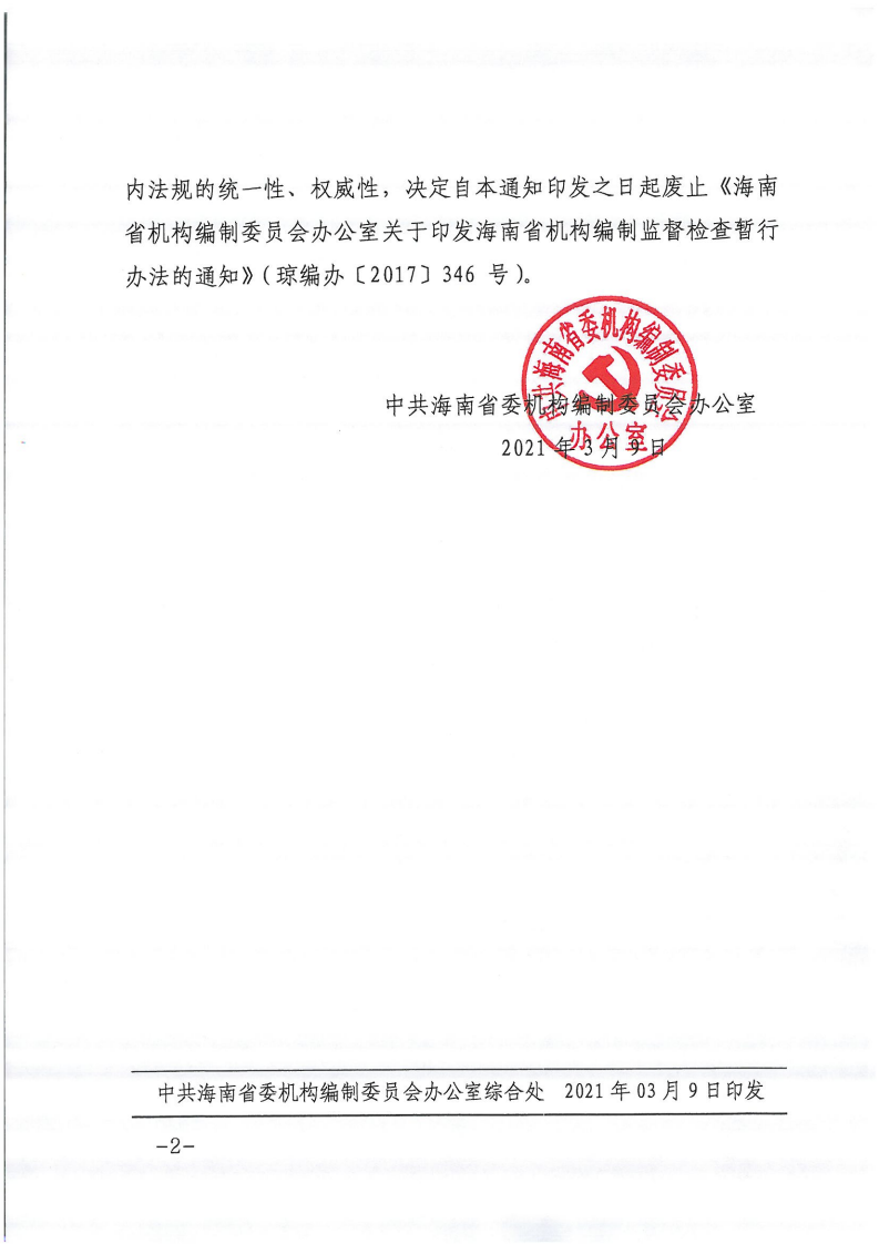 中共海南省委机构编制委员会办公室关于废止《海南省机构编制监督检查暂行